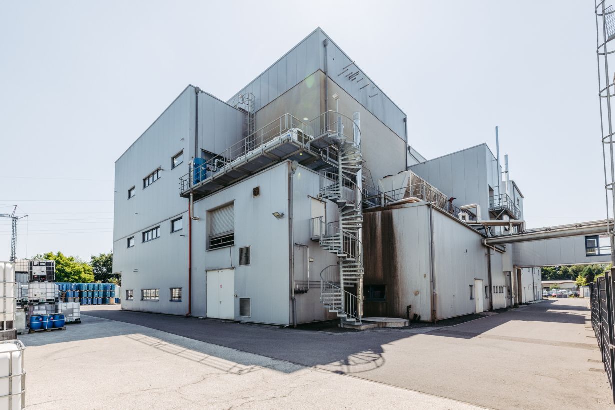 Ein anspruchsvolles Bauprojekt umfasste den Neubau und die Erweiterung mehrerer Produktionshallen, bei dem über 400 Tonnen Stahl verbaut und mehr als 450.000 Kubikmeter Fels abgetragen und abtransportiert wurden.